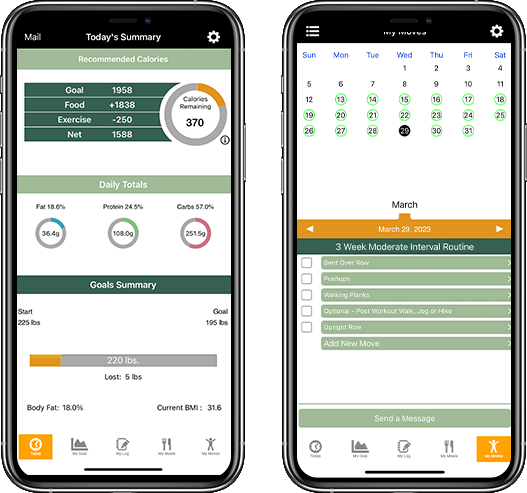 • Food log to track calories consumed